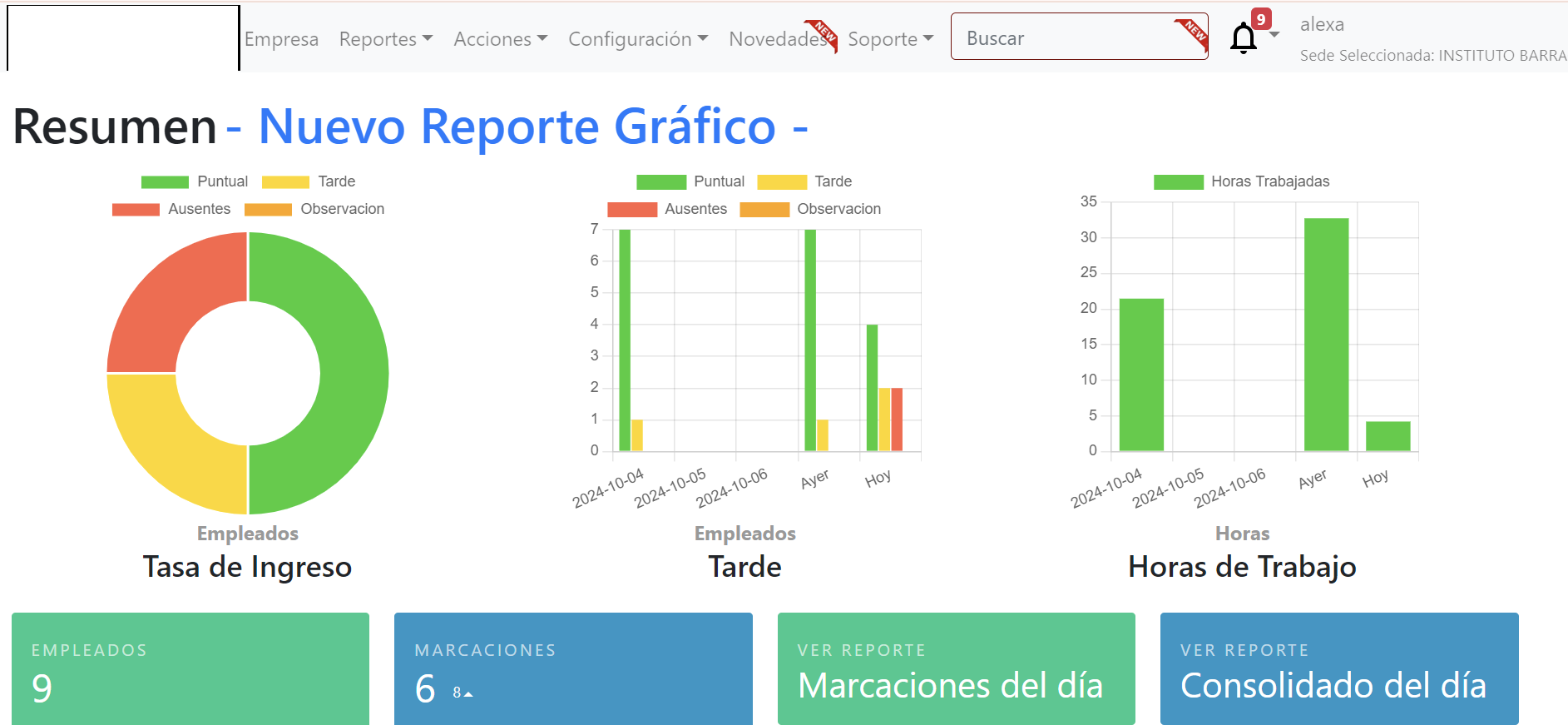 • Múltiples informes por periodos, diferetenes filtros, por fecha, por novedades, por empresas, Control de tiempo de almuerzos.